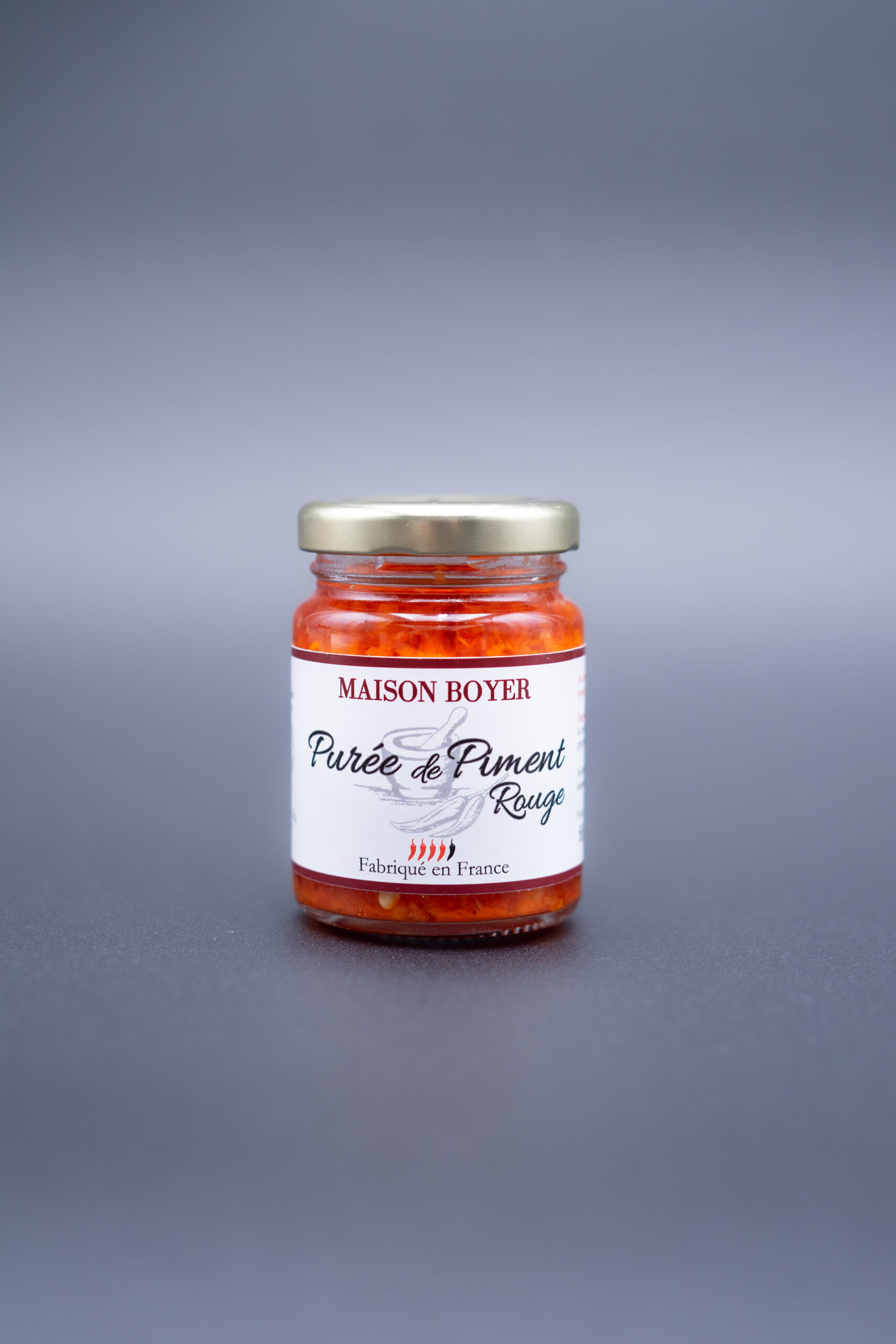 Ingrédients : Piment rouges, huile de colza,gingembre frais, vinaigre, ail, sel.